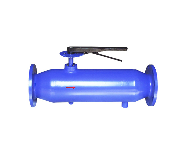 蝶阀阀瓣全开,水流经过滤网后,由出水口排出,杂物被滤网截留下来,此时排污阀关闭。